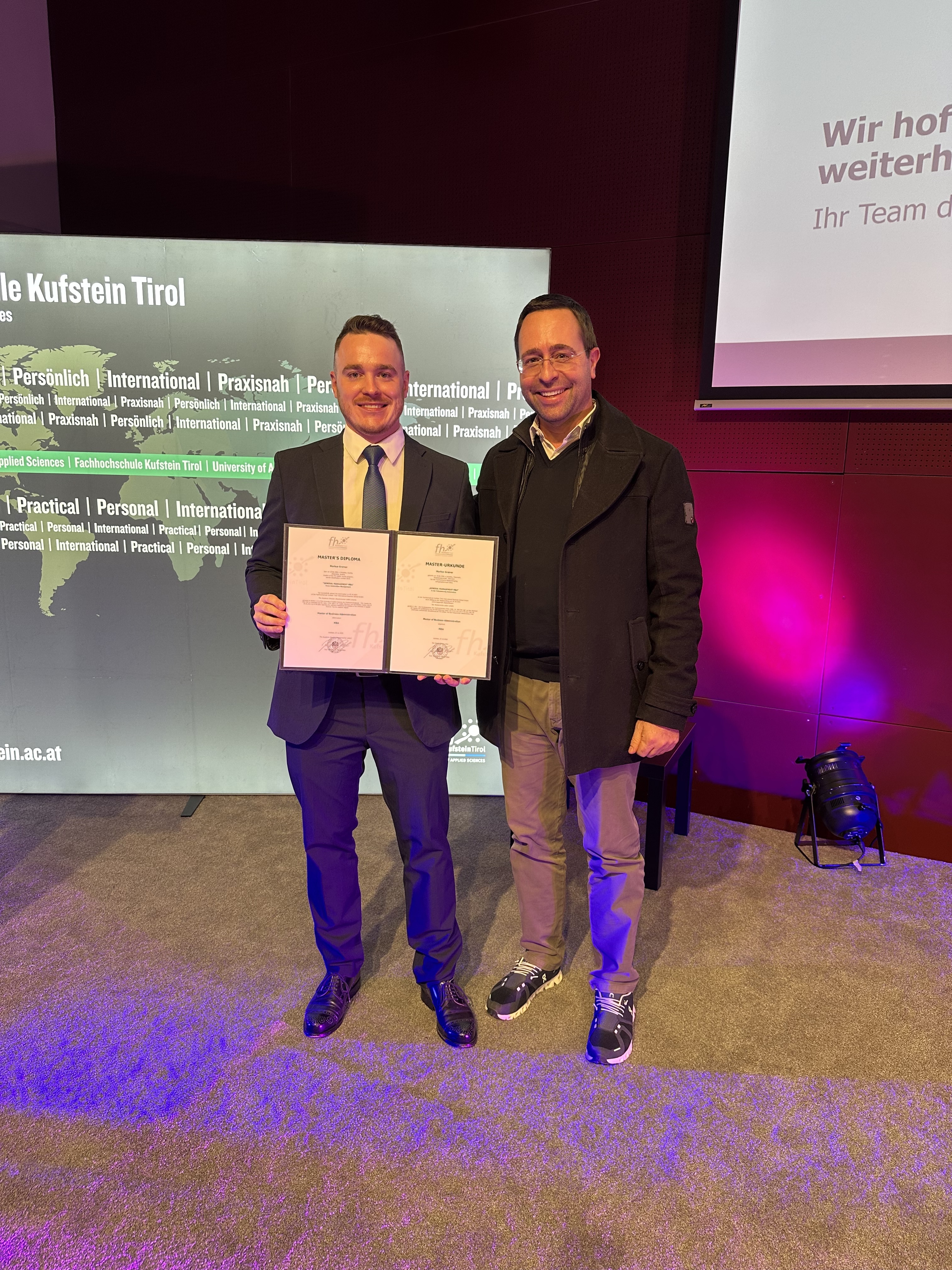 …durfte ich als (nebenberuflicher) Lehrbeauftragter und Masterarbeitsbetreuer an der FH Kufstein Tirol – University of Applied Sciences am Freitag bei der Sponsionsfeier auch „meiner“ MBA-Studenten erleben.